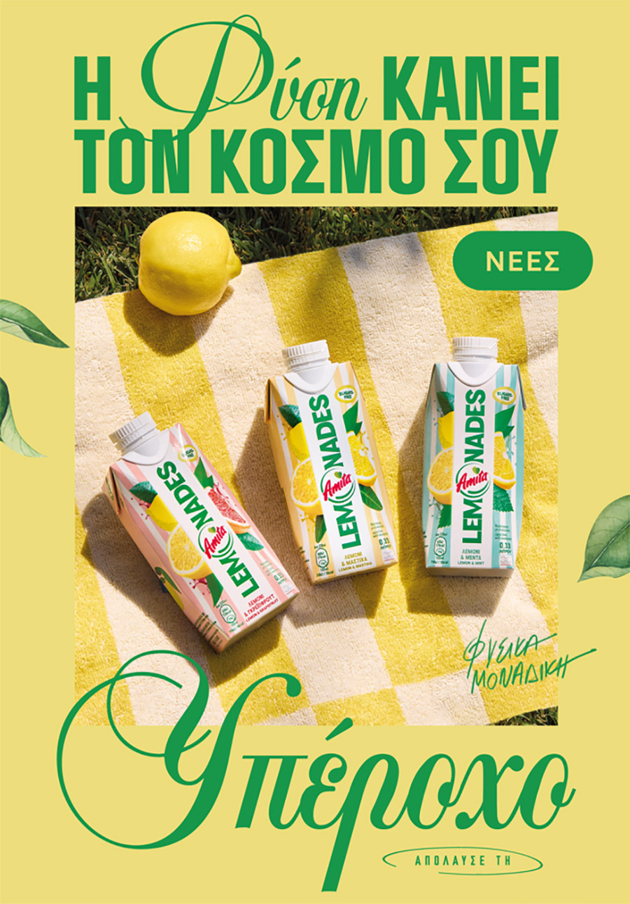 Η νέα σειρά Amita Lemonades είναι εμπνευσμένη από τη φύση και σχεδιασμένη για να προσφέρει μια αίσθηση αναζωογόνησης. Μία σειρά φρουτοποτών με γλυκαντικά, με βασικό συστατικό το λεμόνι και χωρίς προσθήκη ζάχαρης, ενσωματώνουν τον αισιόδοξο και χαρούμενο χαρακτήρα της μάρκας.
