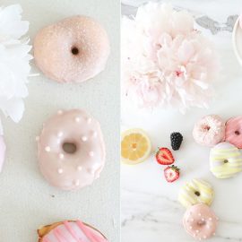 - Ρίχνουμε 2-3 σταγόνες χρώμα ζαχαροπλαστικής. Βουτάμε τα ντόνατς στο γλάσο, τα βάζουμε σε σχάρα και τα αφήνουμε να σταθούν για 1 λεπτό.