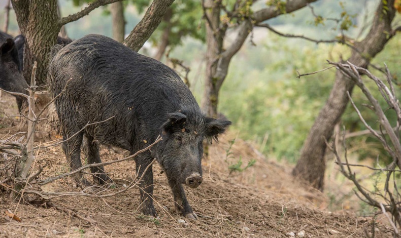 Βασικός σκοπός της επίσκεψής μου όμως ήταν η Διημερίδα για τον «αυτόχθονα μαύρο χοίρο» που οργανώθηκε από τον πανελλήνιο συνεταιρισμό εκτροφέων μαύρου χοίρου Ο ΕΥΜΑΙΟΣ*, τη Φάρμα Φωτιάδη και τα ΑΒ Βασιλόπουλος, υπό την αιγίδα του Υπουργείου Αγροτικής Ανάπτυξης. «Πρόκειται για τα γουρούνια της αρχαίας Κορίνθου, της Ρόδου και των Αθηνών που ταξίδεψαν με τους πρώτους αποίκους στα ελληνικά χωριά της Σικελίας, της Κορσικής και της Ισπανίας». Αυτή η φυλή χοίρων ζει ελεύθερα σε ορεινά βοσκοτόπια. Τροφή τους τα βελανίδια, οι βολβοί και τα χόρτα. Προσαρμόζονται, όμως, σε όλες τις συνθήκες, αντέχουν τις κακουχίες της ελληνικής υπαίθρου και ακριβώς επειδή περπατούν πολύ, δίνουν ένα κρέας σπάνιας νοστιμιάς με υποδόριο λίπος (κάτι που λατρεύουν οι μάγειρες, αφού το κάνει πιο ζουμερό στο ψήσιμο) και με μεγαλύτερη ποσότητα σίδηρου. Στις αρχές του 2011 ο Νίκος Φωτιάδης βρίσκει 10 χοιρομητέρες σε ξεχασμένα ελληνικά χωριά και αποφασίζει να ξεκινήσει την εκτροφή τους για να μην γίνει ο μαύρος χοίρος μουσειακό είδος. Σε δυο χρόνια οι 10 χοιρομητέρες έγιναν 200 και σήμερα στο μοναδικό φυσικό περιβάλλον της φάρμας οι μαύροι απόγονοί τους «συμβιώνουν» μαζί με τα αγριογούρουνα και τα ελάφια τρεφόμενα με φυτικές τροφές σύμφωνα με τους κανόνες ευζωίας υπό την επίβλεψη της Κτηνιατρικής Σχολής του Αριστοτελείου Πανεπιστημίου Θεσσαλονίκης.