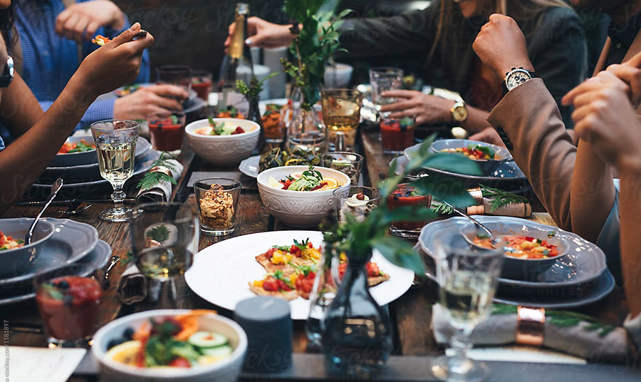 Εξίσου δημοφιλή είναι και τα γεύματα με μεζεδάκια που τα μοιράζονται όλοι μαζί, κι αν είναι να μην χρειάζονται καν μαχαιροπίρουνα… ακόμη καλύτερα! Ή πάλι ένα δύο φαγητά που έρχονται σε μεγάλες πιατέλες και μία πλούσια σαλάτα είναι επιλογές που δίνουν στον καθένα το δικαίωμα να πάρει όσο θέλει στο πιάτο του. Η αίσθηση της απλότητας και της οικειότητας είναι το ζητούμενο.