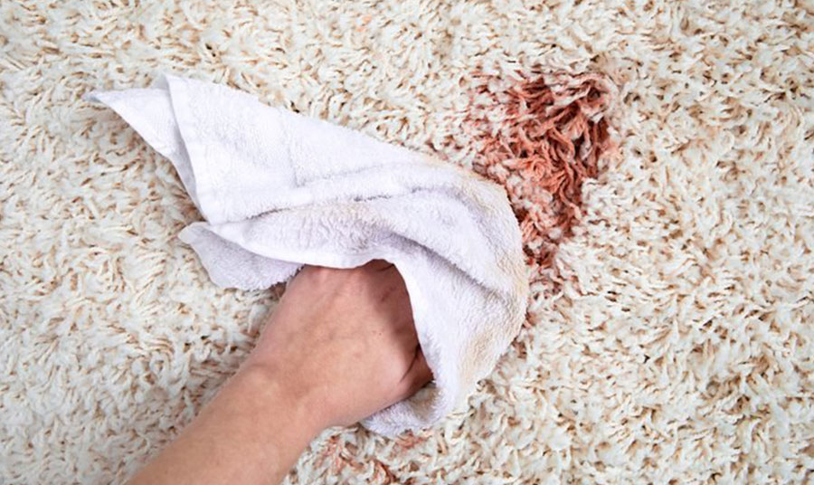 • Τέλος, μουσκεύουμε με λίγο νερό και ταμπονάρουμε πιέζοντας ελαφρά με την πετσέτα μέχρι να στεγνώσει το επίμαχο σημείο και να εξαφανιστεί ο λεκές.