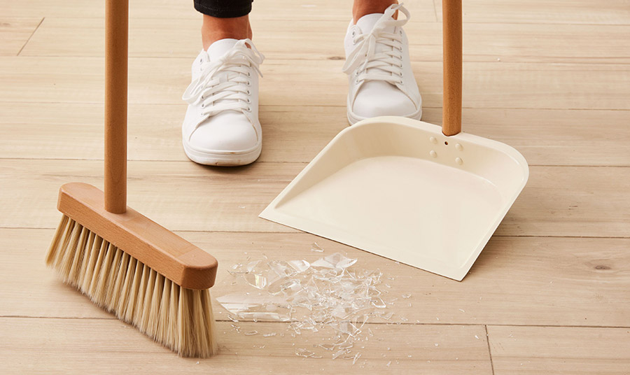 Αντ’ αυτού, είναι προτιμότερο να σκουπίζετε προσεκτικά τα μεγάλα θραύσματα χρησιμοποιώντας μια σκούπα και ένα φαράσι. Ένα πανί μικροϊνών μπορεί να βοηθήσει στον καθαρισμό τυχόν υπολειμμάτων μετά από αυτό.