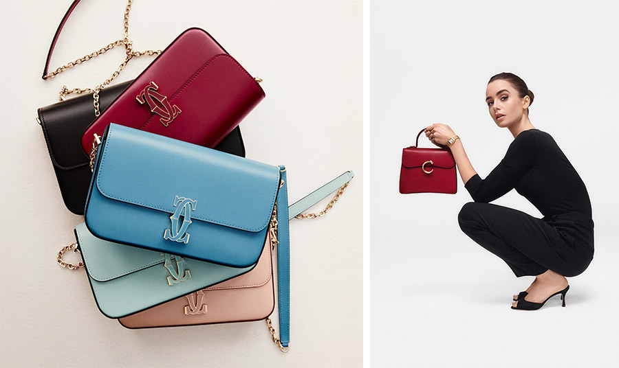 Η Collins βρίσκεται επίσης μπροστά στη νέα καμπάνια για την τσάντα Double C de Cartier, η οποία τώρα περιλαμβάνει δύο νέα μοντέλα και νέα χρώματα. Η χρήση μιας λεπτής αλυσίδας σαν κόσμημα προσθέτει μια εκλεπτυσμένη πινελιά, ενώ επιτρέπει στην τσάντα να φοριέται στον ώμο ή χιαστί στο σώμα.