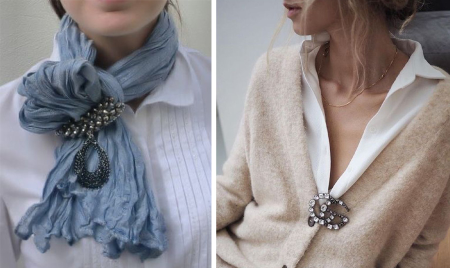 Επωφεληθείτε από την πρακτικότητα της χρησιμοποιώντας την για να κλείσετε μια ζακέτα ή επιλέξτε μόνο το στυλ και καρφιτσώστε την σε ένα απλό λευκό φανελάκι.