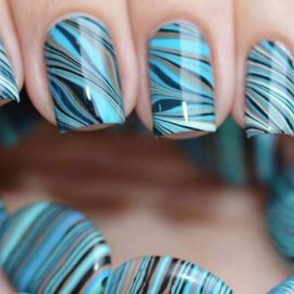 Για να κάνετε μόνες σας αυτά τα «μαρμάρινα» νερά στο σπίτι, σίγουρα χρειάζεται να έχετε και λίγη καλλιτεχνία μέσα σας! Αλλά αν αποφασίσετε να δοκιμάσετε μόνες θα χρησιμοποιήσετε ως βάση λευκό βερνίκι, στη συνέχεια θα προσθέσετε τυχαίες γραμμές του χρώματος της επιλογής για να δημιουργήσετε αυτά τα «νερά». Μπορείτε επίσης να προσθέσετε γυαλιστερό βερνίκι και φυλλαράκια χρυσού για έξτρα καλοκαιρινή λάμψη. Το καλύτερο είναι ότι για να δημιουργήσετε αυτό το στιλ στα νύχια σας είναι ότι μπορείτε να χρησιμοποιήσετε όμορφα χρώματα, ενώ η τυχαία διάταξη των σχημάτων και των γραμμών δεν απαιτεί να είστε επαγγελματίας!