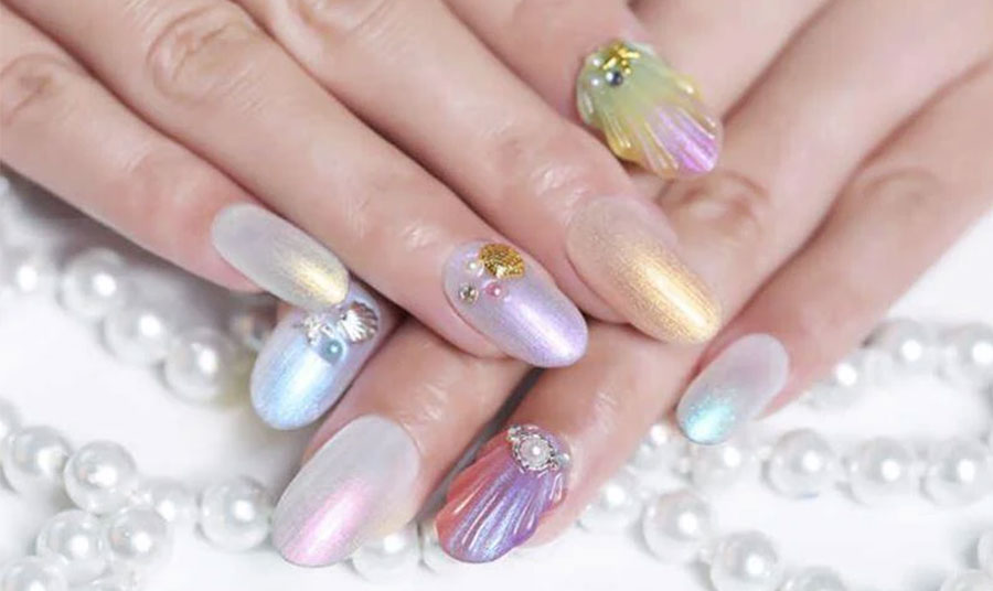 Οι γαλακτώδες ιριδίζουσες αποχρώσεις εμπνευσμένες από τα αγαπημένα μας ευρήματα στην παραλία είναι της μόδας. Δεν υπάρχει τίποτα πιο όμορφο από ένα αστραφτερό ροζ του κοχυλιού που τραβάει το φως—είναι σαν ένα καλειδοσκόπιο τεσσάρων διαφορετικών γυαλιστικών σε ένα! Ή απλώστε μια γυαλιστερή μαργαριταρένια απόχρωση πάνω από τις κλασικές μπεζ ή ιβουάρ αποχρώσεις σας.