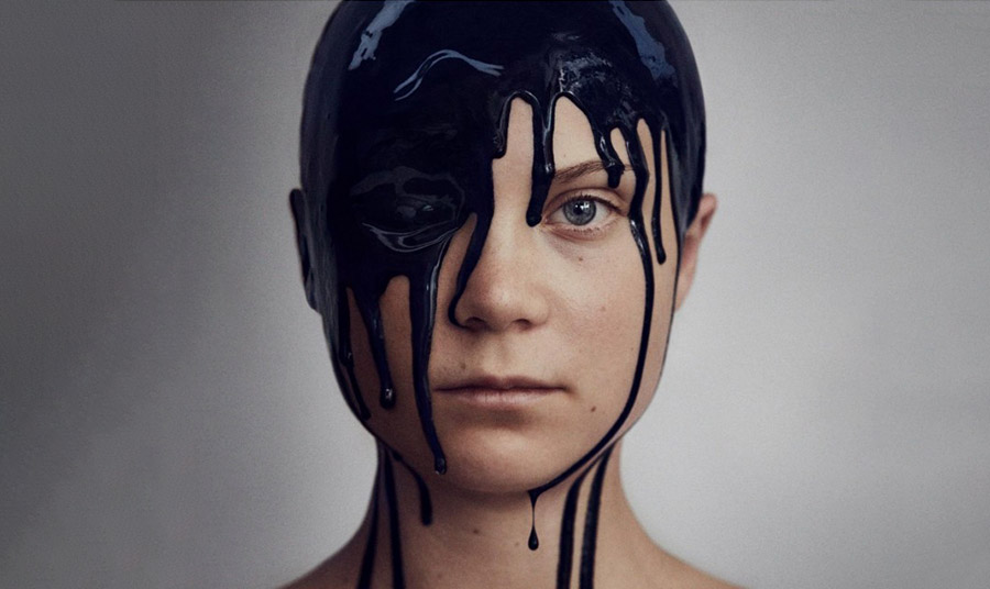 Την περιέλουσαν με μαύρη μπογιά η οποία έσταξε στο πρόσωπο, τα μάτια, τον λαιμό και τους ώμους της, παραπέμποντας στις επιπτώσεις του πετρελαίου στον πλανήτη και τον άνθρωπο.
