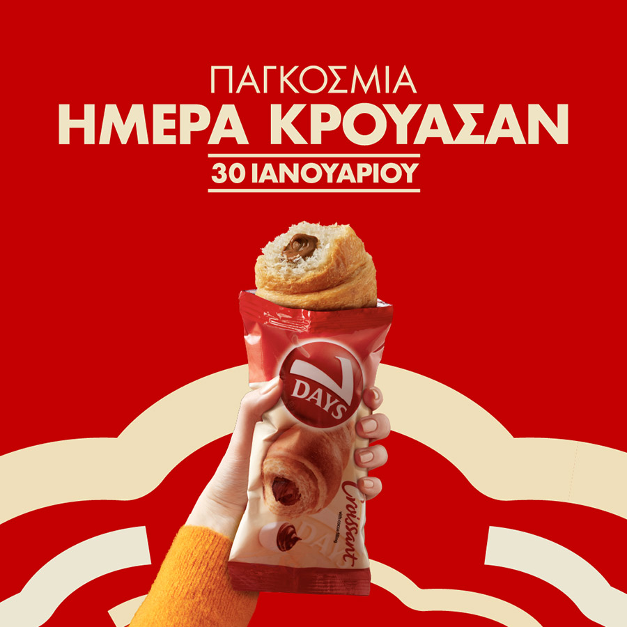 Στις 30 Ιανουαρίου, τα 7DAYS, το πρώτο συσκευασμένο κρουασάν που παρασκευάστηκε στην Ελλάδα, σας καλεί να γιορτάσετε την Παγκόσμια Ημέρα Κρουασάν.